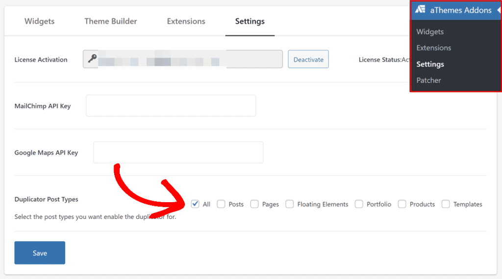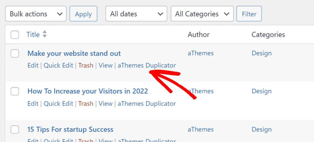 To use the aThemes Duplicator, you need to enable it for the specific post types you want to duplicate.